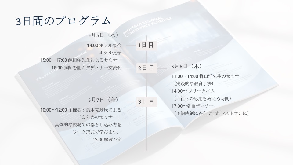 これを特典にした理由は、一人でも多くの参加者にハレクラニ沖縄の良さを体験していただき、お仕事に、人生に生かしてほしいと思っているからです。